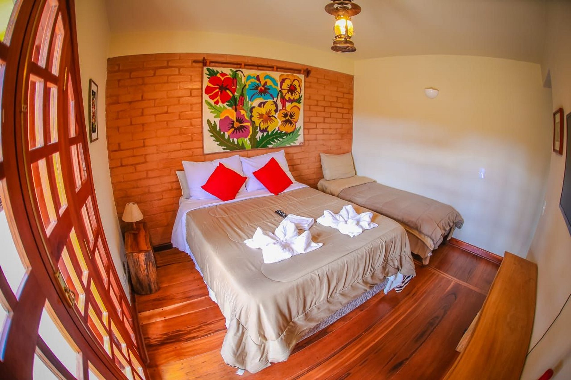 Com uma privilegiada e linda vista da montanha , a suíte conta com uma cama de casal e uma de solteiro. Você tem a liberdade de entrar e sair a qualquer momento do dia ou da noite, pois terá a cópia da chave do quarto e o controle do portão. O banheiro é privativo e conta com chuveiro a gás. Caso esteja trazendo um ou mais pets, é cobrada uma taxa adicional para cada um dos nossos hóspedes de quatro patas.