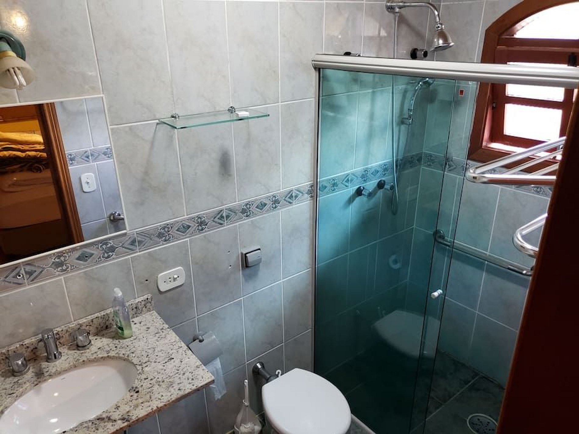 Com uma privilegiada e linda vista da montanha , a suíte tem uma maravilhosa cama de casal e conta com smartv e um banheiro privativo com chuveiro a gás. Você tem a liberdade de entrar e sair a qualquer momento do dia ou da noite, pois terá a cópia da chave do quarto, da casa e o controle do portão. Caso esteja trazendo um ou mais pets, é cobrada uma taxa adicional para cada um dos nossos hóspedes de quatro patas.