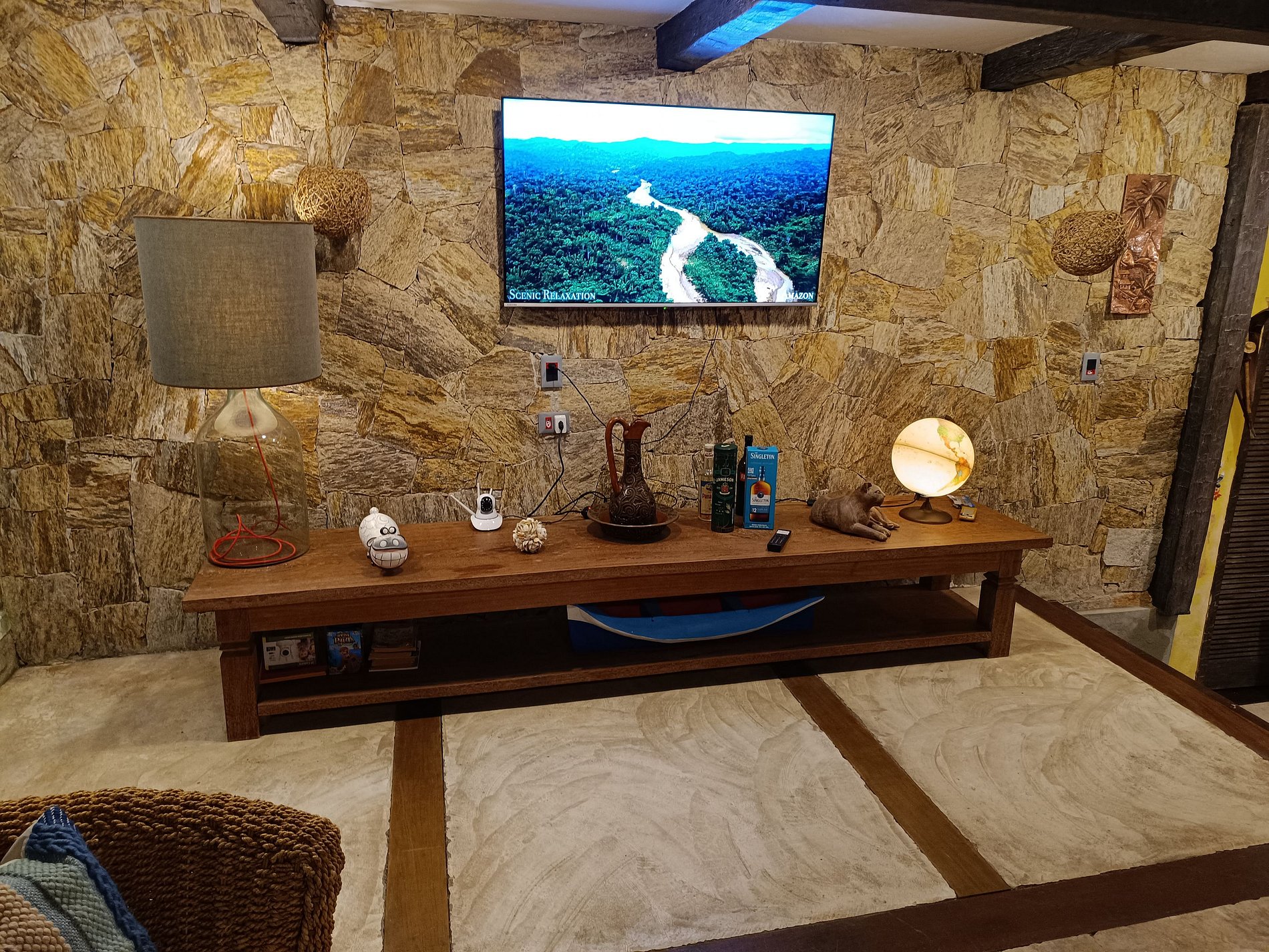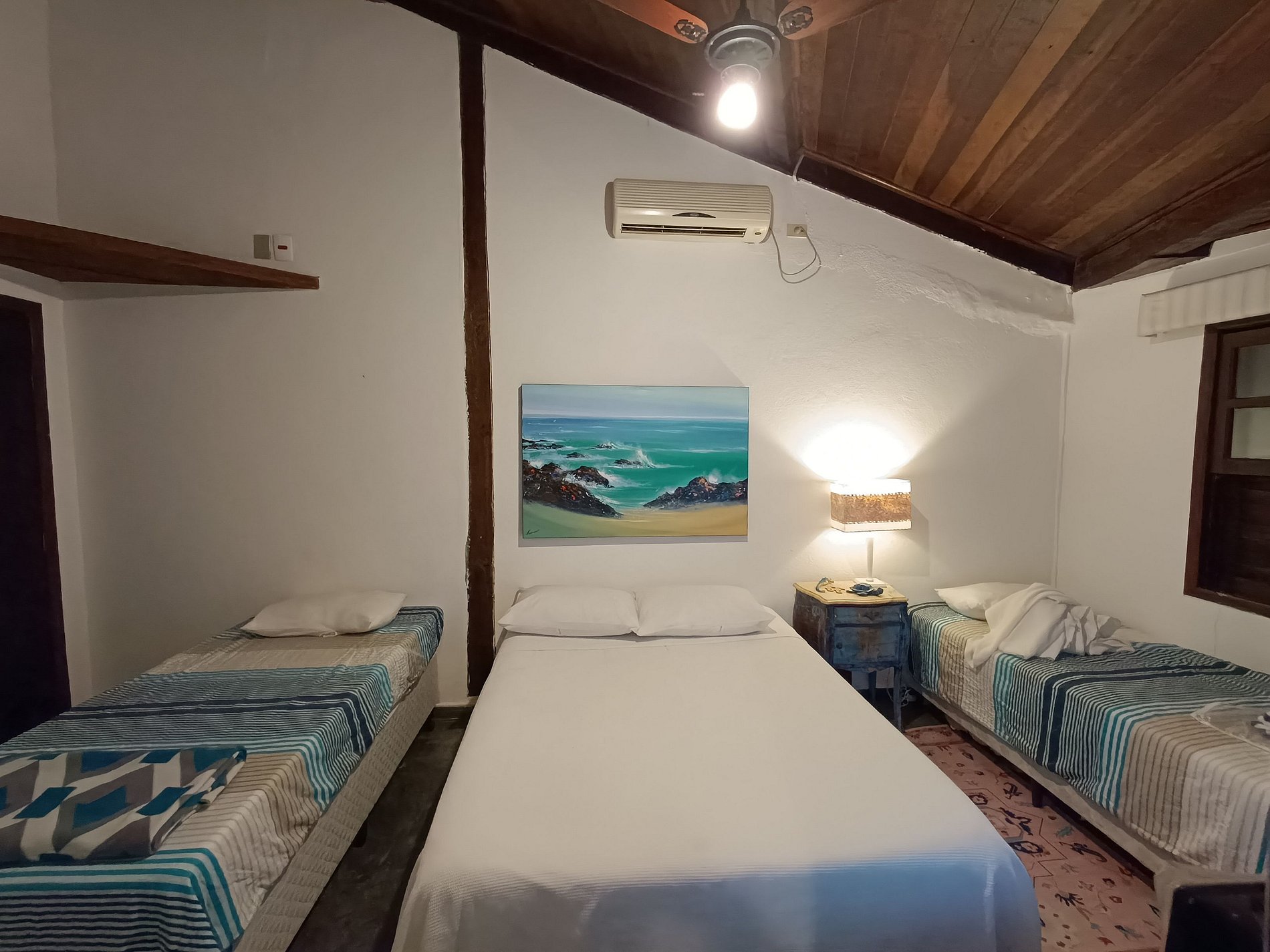 No interno 3 suítes com ar condicionado, ventiladores de teto, camas confortáveis e Smart TV de 50 polegadas em todas as suítes.