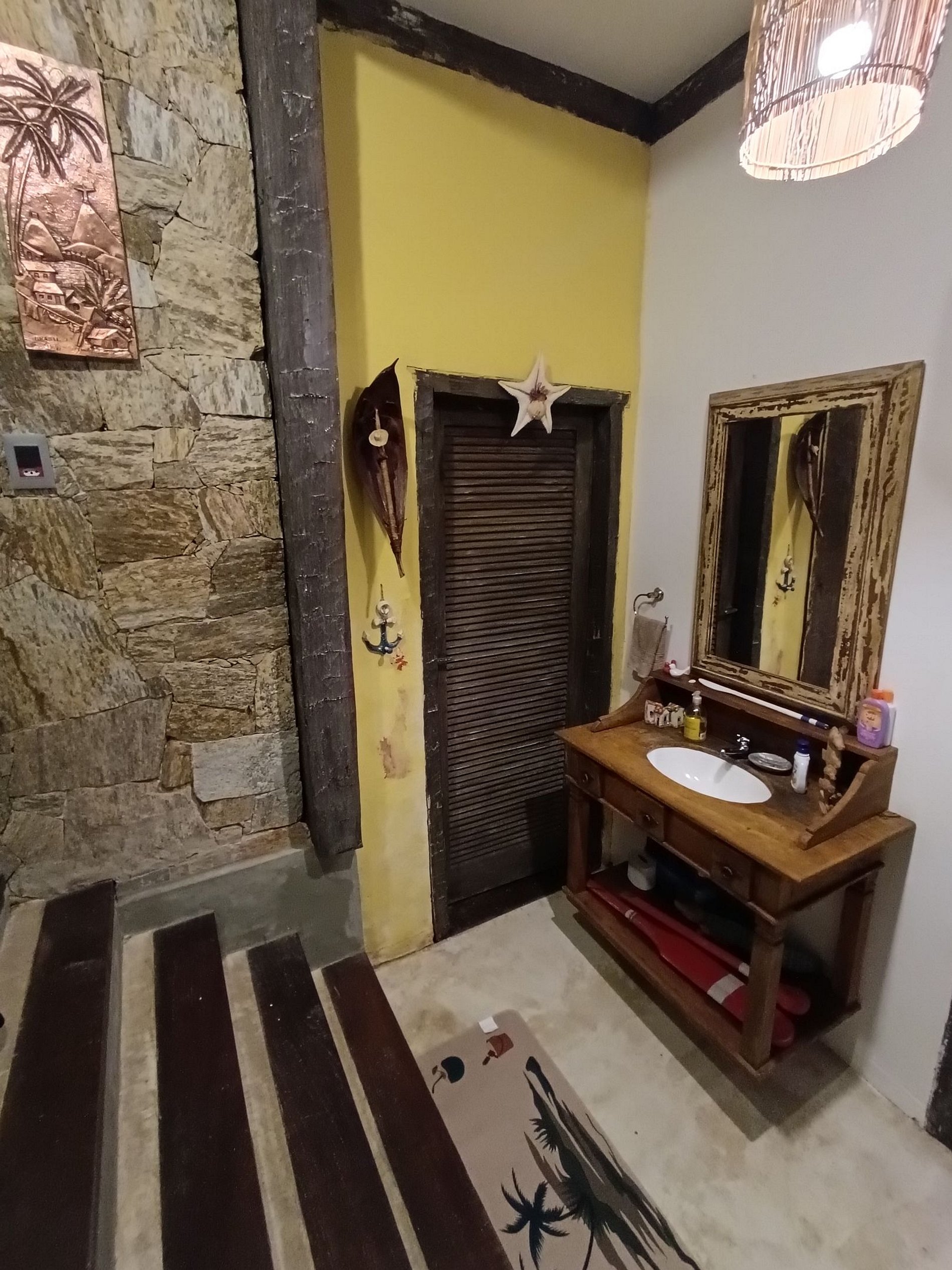 No interno 3 suítes com ar condicionado, ventiladores de teto, camas confortáveis e Smart TV de 50 polegadas em todas as suítes.