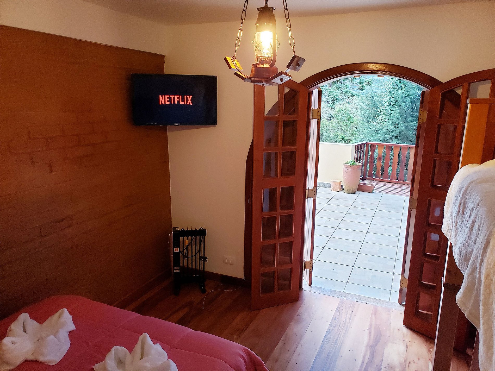 Sala de estar compartilhada com outros hóspedes, com lareira liberada para uso e televisão de 50 polegadas com acesso a Netflix, YouTube e os melhores canais a cabo; Piscina, jardim, terraço e pátio, são alguns dos lindos locais que poderá ter acesso. O Uber é uma opção de baixo custo (exemplo: um deslocamento ao centro turístico Capivari custa em média R$8,00 e rodoviária custa em média R$7,50). Se vier com o seu veiculo o estacionamento é gratuito dentro da propriedade.