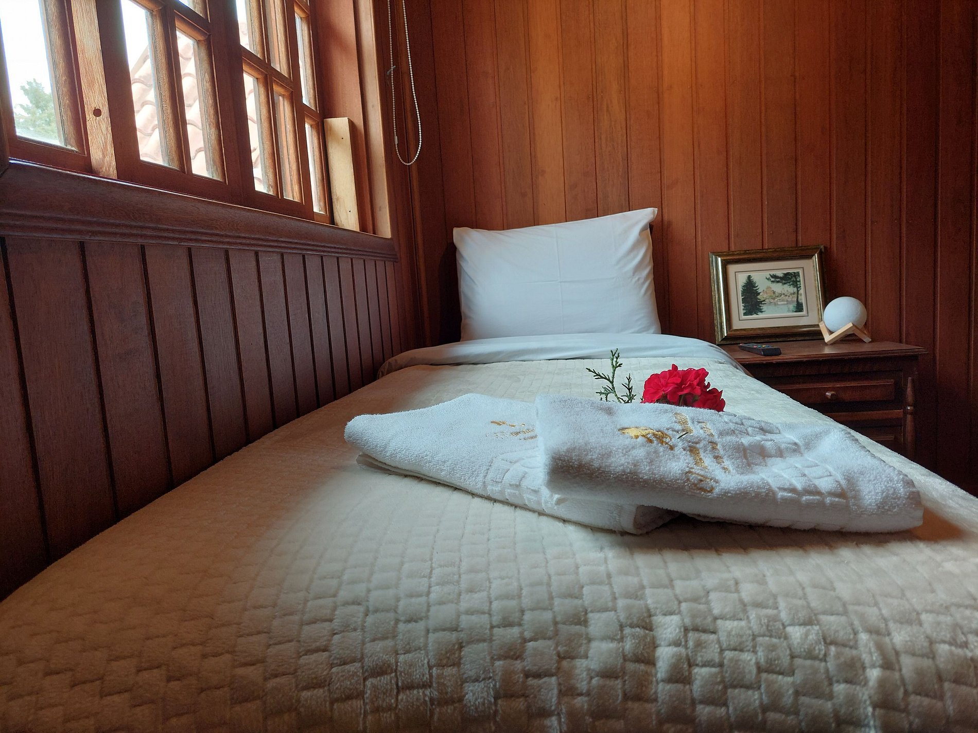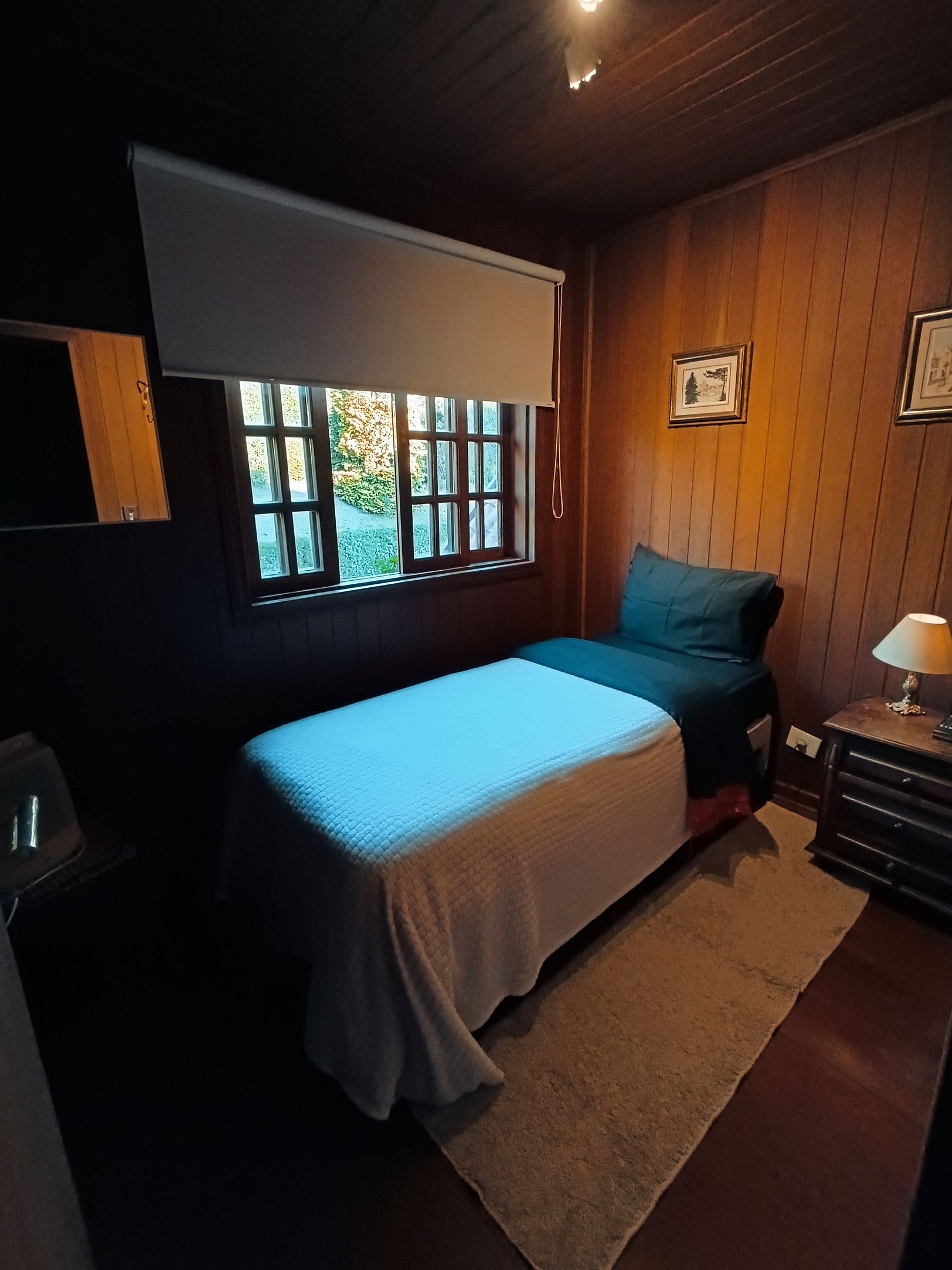 Com uma linda vista para o jardim, o quarto é todo em madeira, dando um ar de cabana rupestre. Possui uma cama de solteiro e uma Smart TV. Você tem a liberdade de entrar e sair a qualquer momento do dia ou da noite, pois terá a cópia da chave do quarto e o controle do portão. Um banheiro compartilhado atende este quarto. Caso esteja trazendo um ou mais pets, é cobrada uma taxa adicional para cada um dos nossos hóspedes de quatro patas.